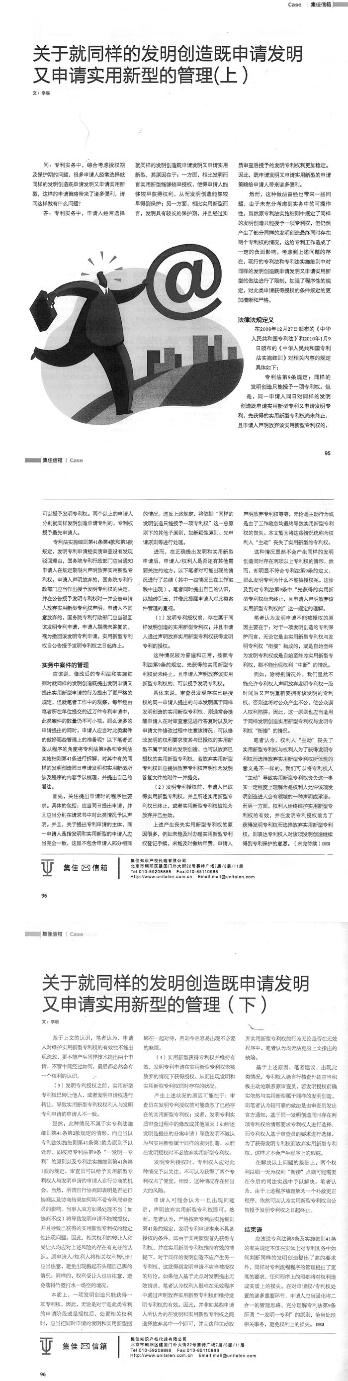 《電子知識產權》:關于就同樣的發(fā)明創(chuàng)造既申請發(fā)明又申請實用新型的管理