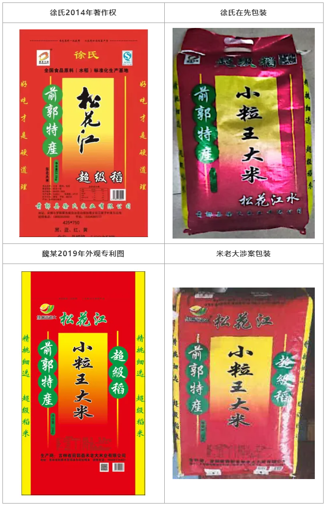 對該爭議焦點,集佳律師主要從原告徐氏公司的小粒王大米在蒙自地區(qū)的銷售時間、銷售規(guī)模方面論證其具備一定的知名度,而且,該地位于邊陲,群眾普遍對東北大米的識別能力不足,往往以大米包裝裝潢作為購買的參照物。米老大米業(yè)的包裝袋與徐氏米業(yè)的包裝袋外觀上非常近似,足以混淆,因此,應(yīng)當(dāng)認(rèn)定其構(gòu)成不正當(dāng)競爭行為。